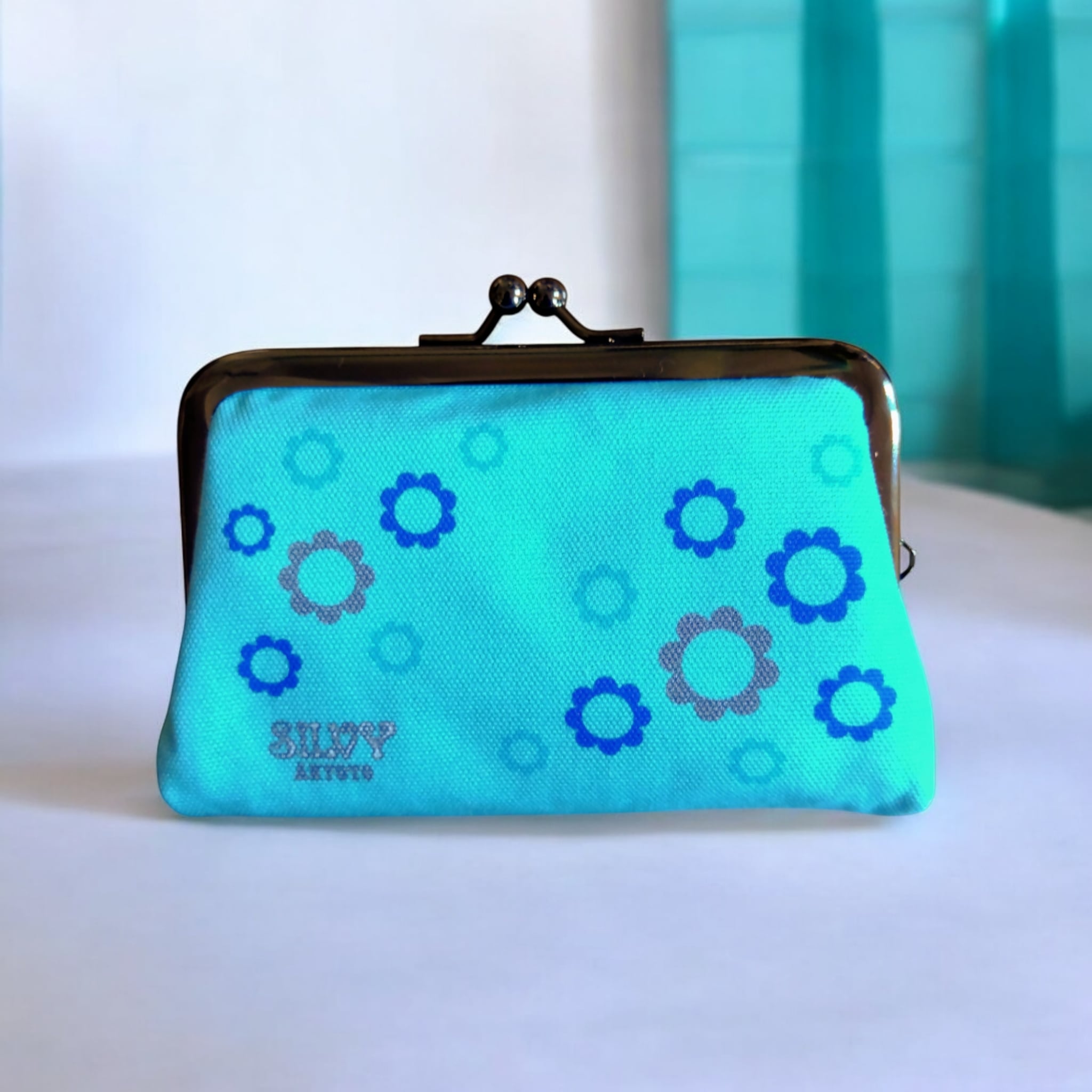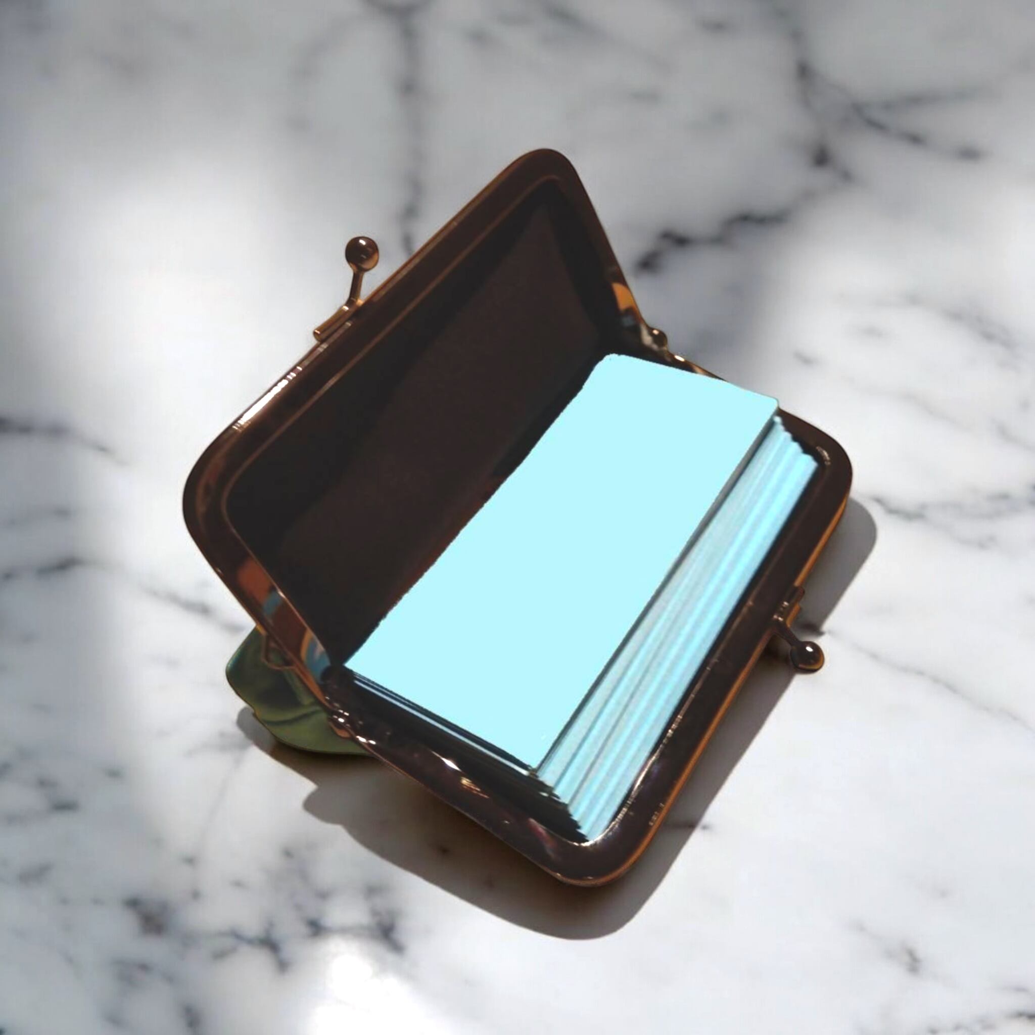 小銭も沢山入る がま口カードケース(名刺入れ)ライトブルー